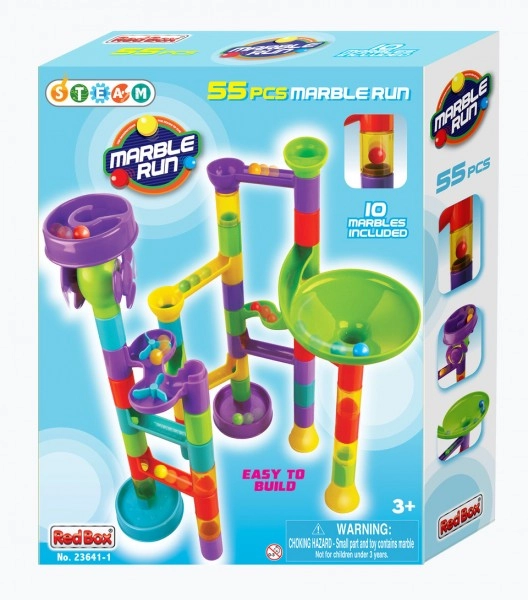 Esta pista de canicas de plástico con 55 piezas permite a los niños construir recorridos variados y comprobar qué canica es la más rápida. Gracias a los distintos obstáculos y elementos giratorios, cada bajada es diferente y llena de emoción. El set fomenta la creatividad, la paciencia y la coordinación mano-ojo.