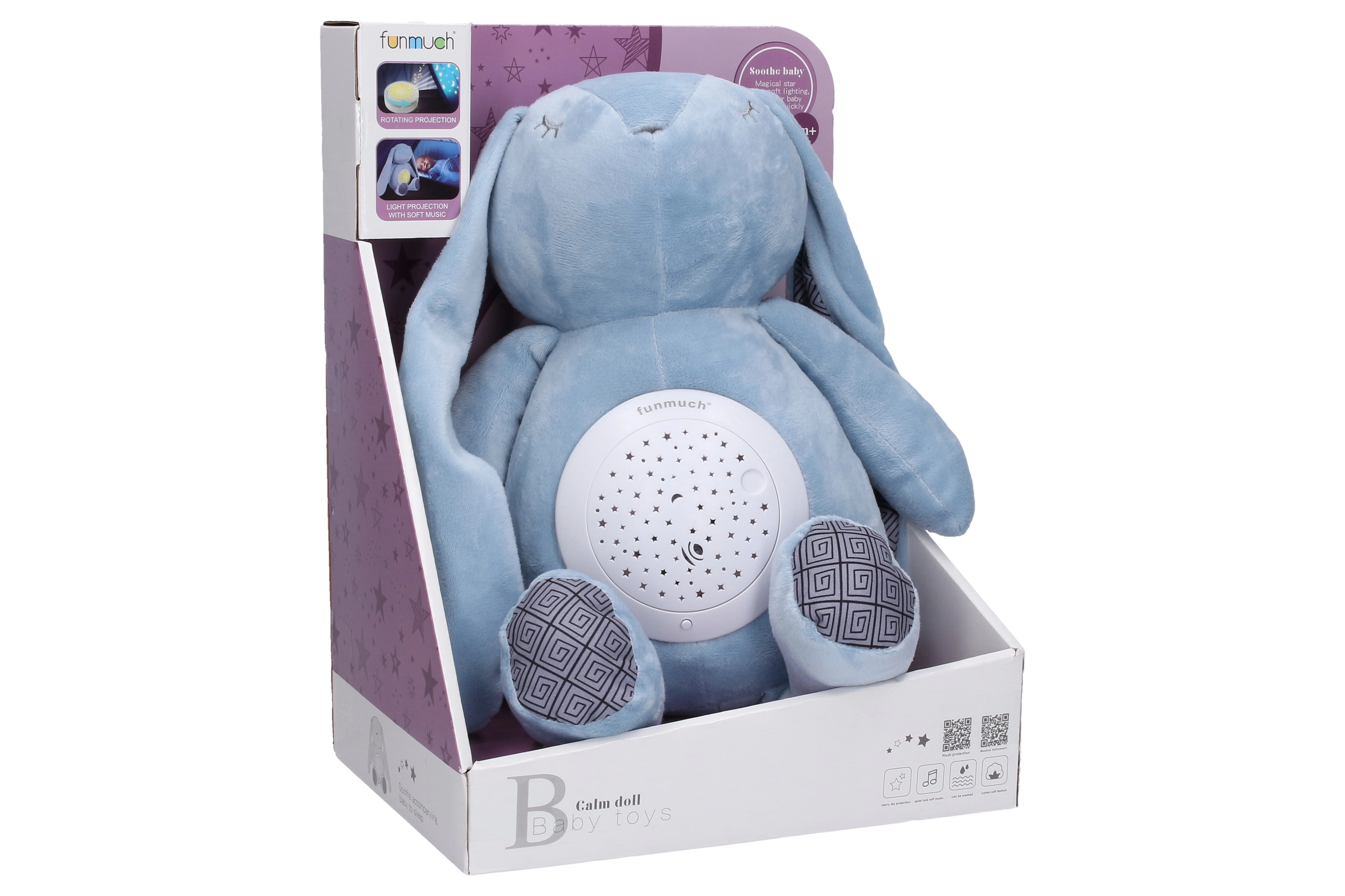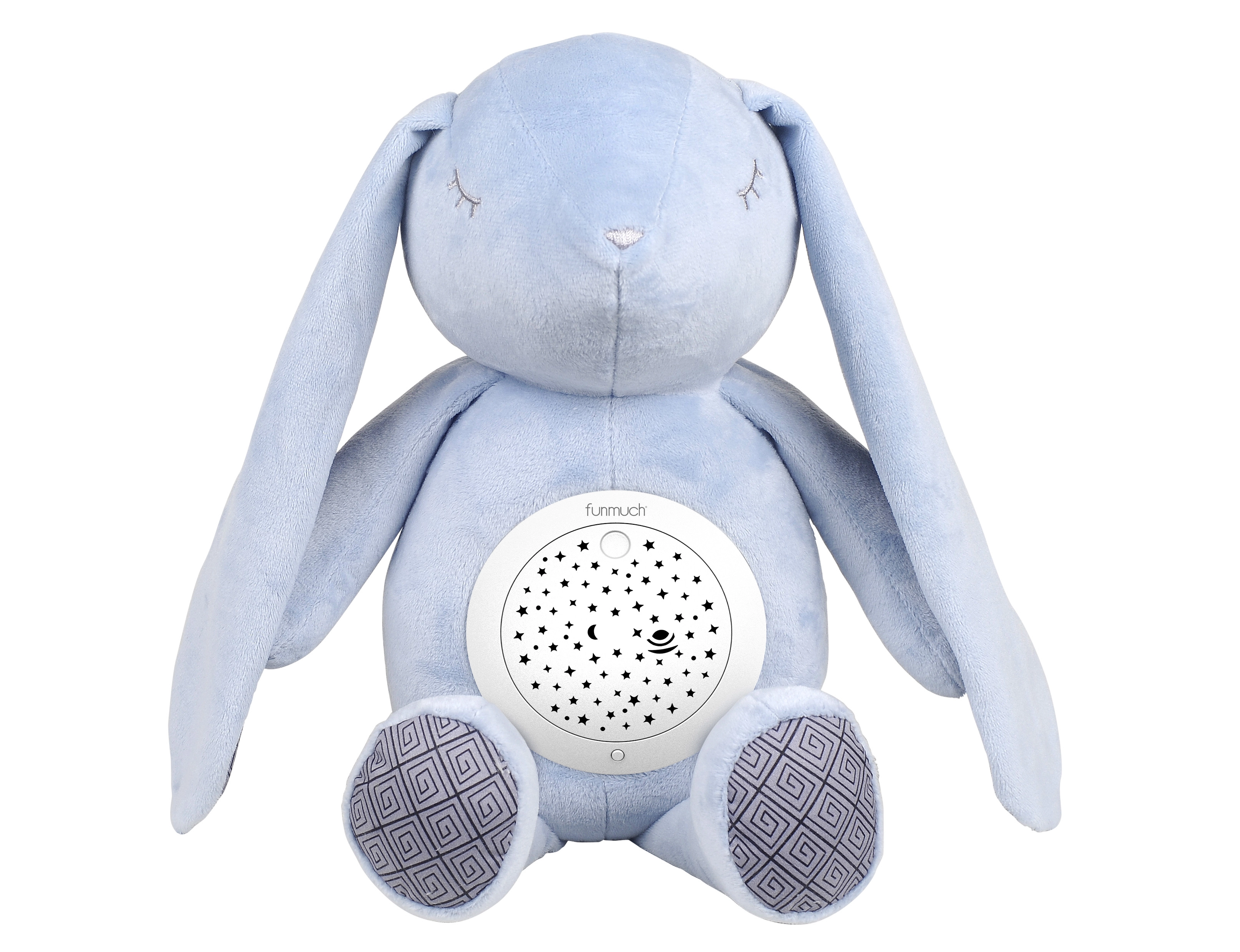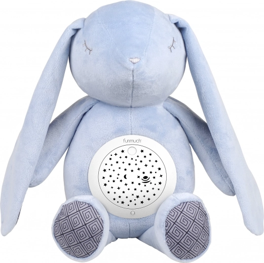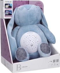 El conejito para dormir con proyector es el compañero ideal para la habitación infantil. Gracias a la combinación de luz suave y melodías relajantes, crea un ambiente agradable para dormir. El proyector está situado en la barriguita del conejito, donde ilumina, gira y crea una proyección reconfortante.