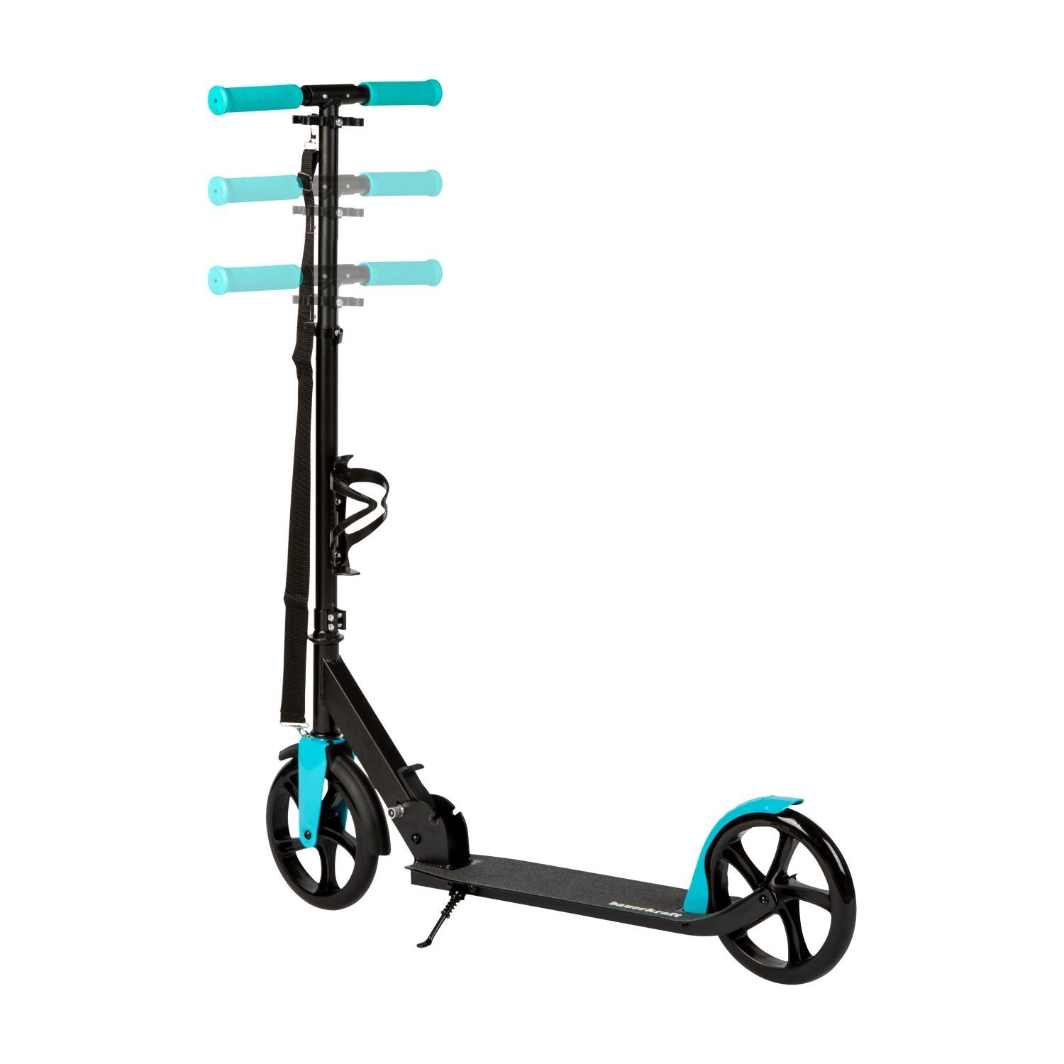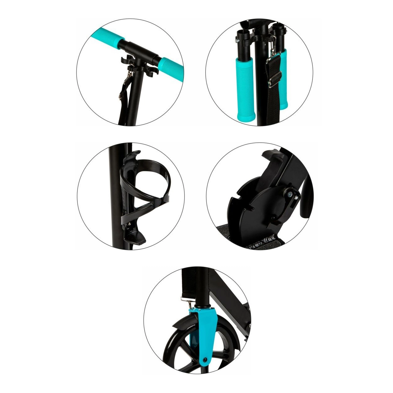 El patinete crece con el usuario: el manillar regulable entre 91 y 101 cm garantiza una ergonomía adecuada y un control seguro a cualquier edad. Los puños ergonómicos antideslizantes aumentan el confort y el control, y el portabotellas facilita mantenerse hidratado en trayectos más largos.