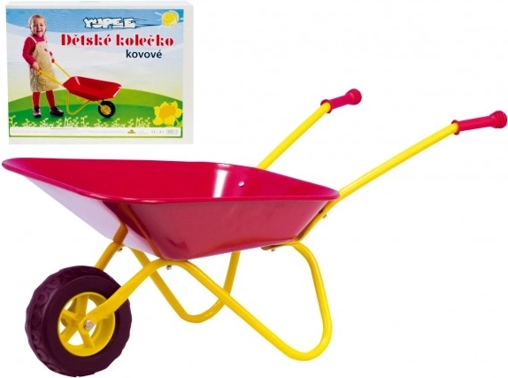 La robusta carretilla infantil Yupee para pequeños jardineros es ideal para el arenero y el jardín. Cuenta con una estructura metálica resistente, empuñaduras de plástico para un agarre cómodo y bordes redondeados en la caja para un juego más seguro.