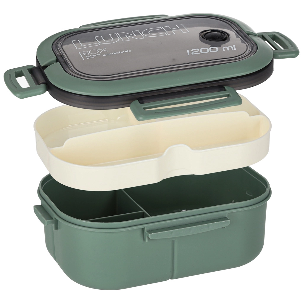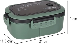 Una fiambrera estilosa y funcional en tonos de verde ofrece una capacidad de 1200 ml y una distribución pensada para transportar cómodamente toda la comida. Gracias a la bandeja extraíble con 3 compartimentos mantendrás las raciones separadas sin mezclar sabores.