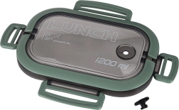 La tapa con junta de silicona y cuatro clips laterales garantiza un cierre fiable, para que la comida no se derrame en el bolso. La caja está hecha de plástico resistente y seguro, libre de BPA, y puede usarse en lavavajillas y microondas (sin la tapa).