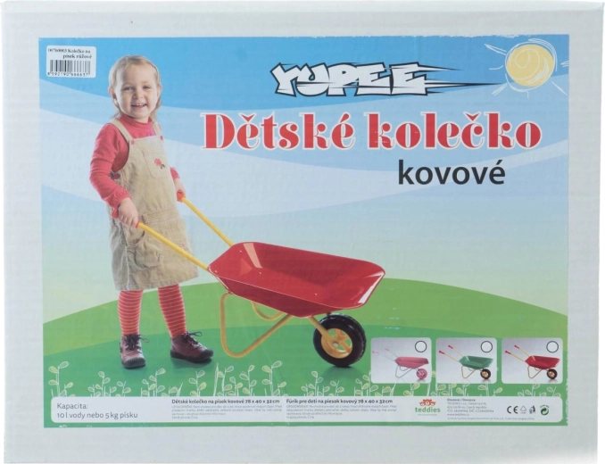 La gran carretilla infantil Yupee está fabricada en chapa metálica resistente que no se deforma y soporta incluso los juegos más movidos. Las asas ergonómicas con mangos de plástico protegen las manos de los niños del metal frío y garantizan un agarre firme. Las esquinas redondeadas aumentan la seguridad para que los niños jueguen con menos riesgos.