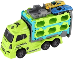Brinda a los niños una conducción llena de acción con este camión de plástico, transportador de autos de carreras. Incluye 2 cochecitos deportivos, el camión tiene mecanismo de inercia para una conducción rápida y una longitud de 22 cm. Ideal para jugar en casa y al aire libre, fomenta la imaginación y las habilidades motoras de los pequeños conductores.