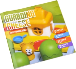Componentes de plástico robusto con bordes redondeados —piezas de caminos, casita con queso, árboles y figuras de la ratoncita y el gato— que fomentan la motricidad fina y la fácil manipulación.