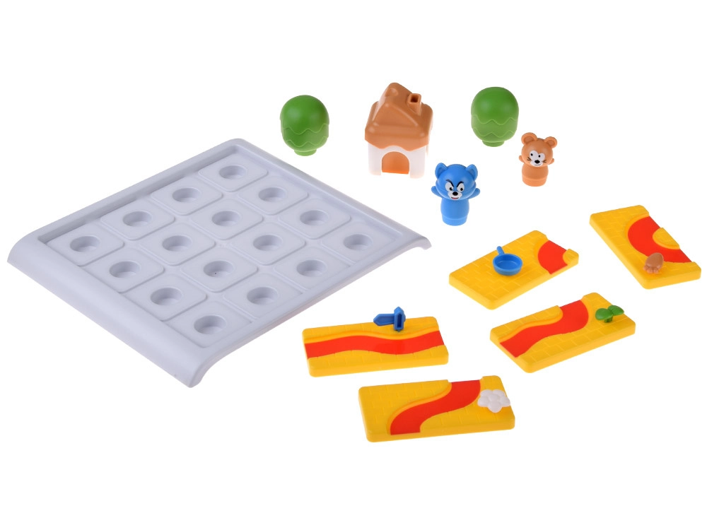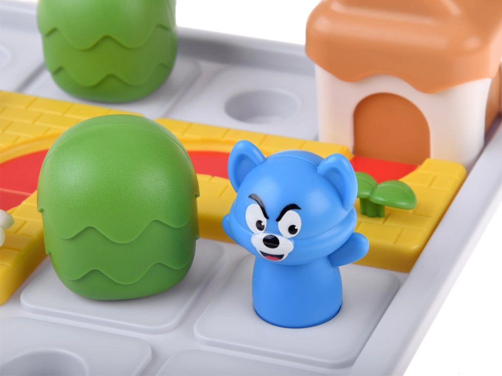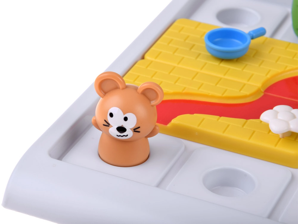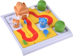 Construye la ruta correcta en el tablero cuadriculado y lleva a la ratoncita (y en niveles superiores también al gato) a la casita con queso. En la variante más sencilla basta con planificar un camino seguro para la ratoncita utilizando las piezas disponibles y evitando los obstáculos. En la variante más exigente crearás dos caminos diferentes —uno para la ratoncita y otro para el gato— y cada uno debe terminar en puertas distintas de la casita.