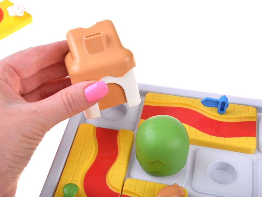 En la variante avanzada construirás dos caminos independientes hacia dos puertas distintas de la casita. Un excelente entrenamiento de lógica, planificación y percepción espacial.