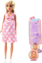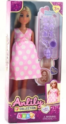 Esta muñeca ANLILY embarazada es un gran juguete para el juego creativo de roles y el cuidado del bebé. Tiene un vientre giratorio con bebé extraíble, viste un vestido rosa con lunares blancos e incluye prácticos accesorios como chupete, sonajeros, biberón, platito y cubiertos. La alta calidad de fabricación garantiza una larga durabilidad y diversión segura.