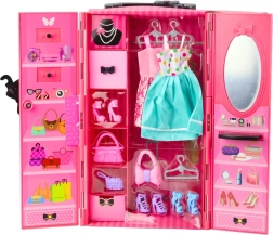 Muñeca con estilo y armario rosa que ofrece horas de diversión creativa. Los niños pueden vestir a la muñeca, combinar vestidos, zapatos y bolsos y crear sus propias estilizaciones de moda. El armario tiene puertas abatibles, en su interior un espejo y estantes para guardar los accesorios de forma ordenada. Un regalo estupendo para fomentar la creatividad y el sentido estético.