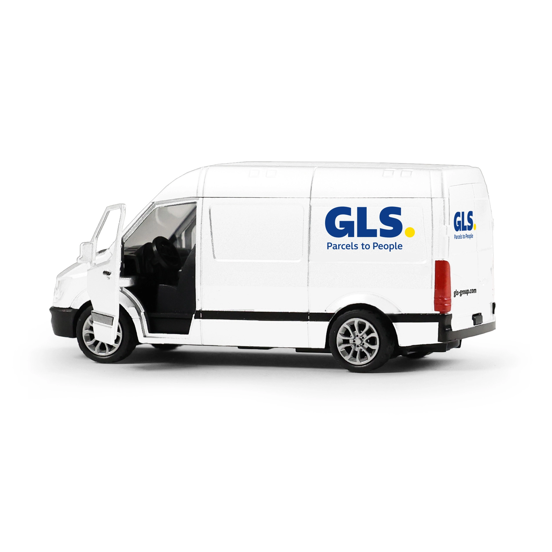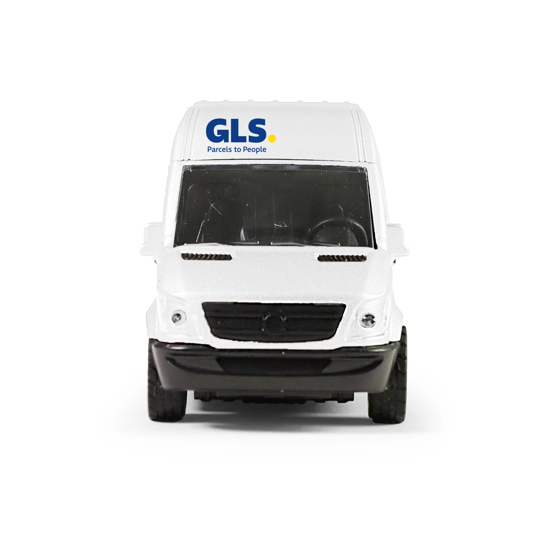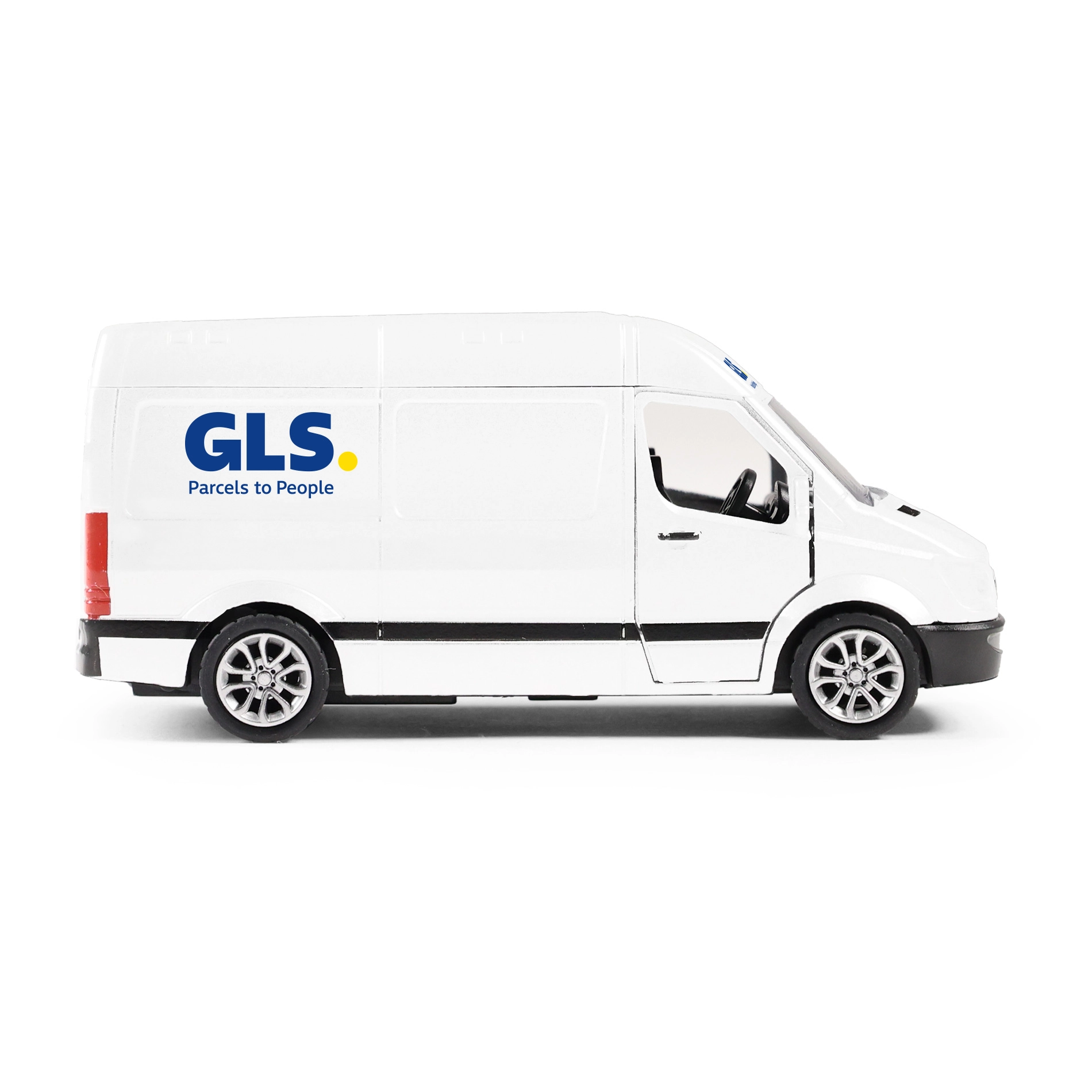 Impresiones precisas del logotipo de GLS y el lema «Parcels to People», la forma de la carrocería, las ventanas y las llantas parecen las de un vehículo real.