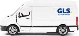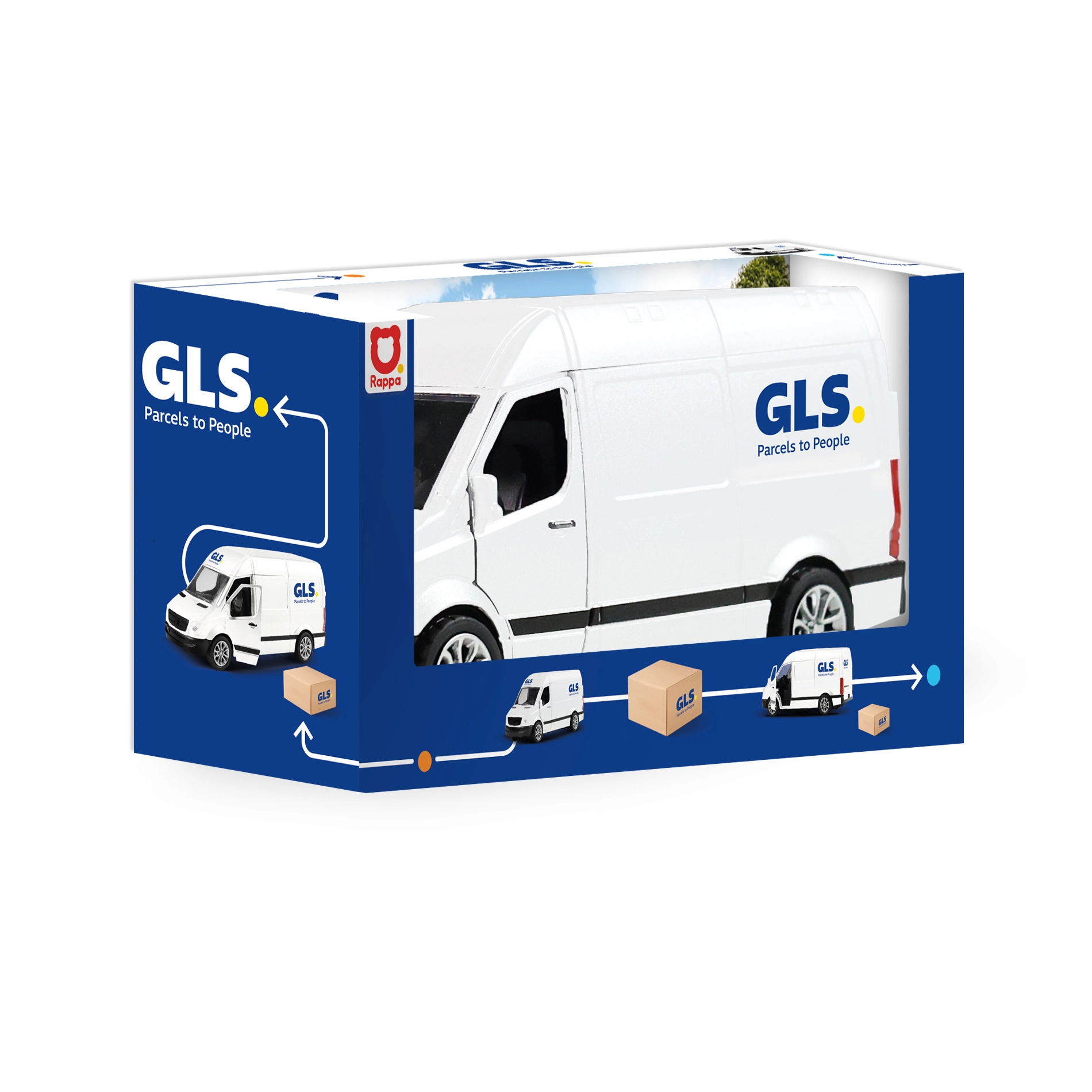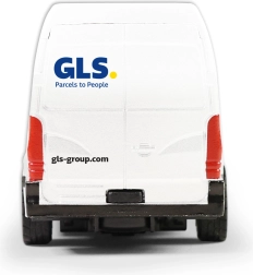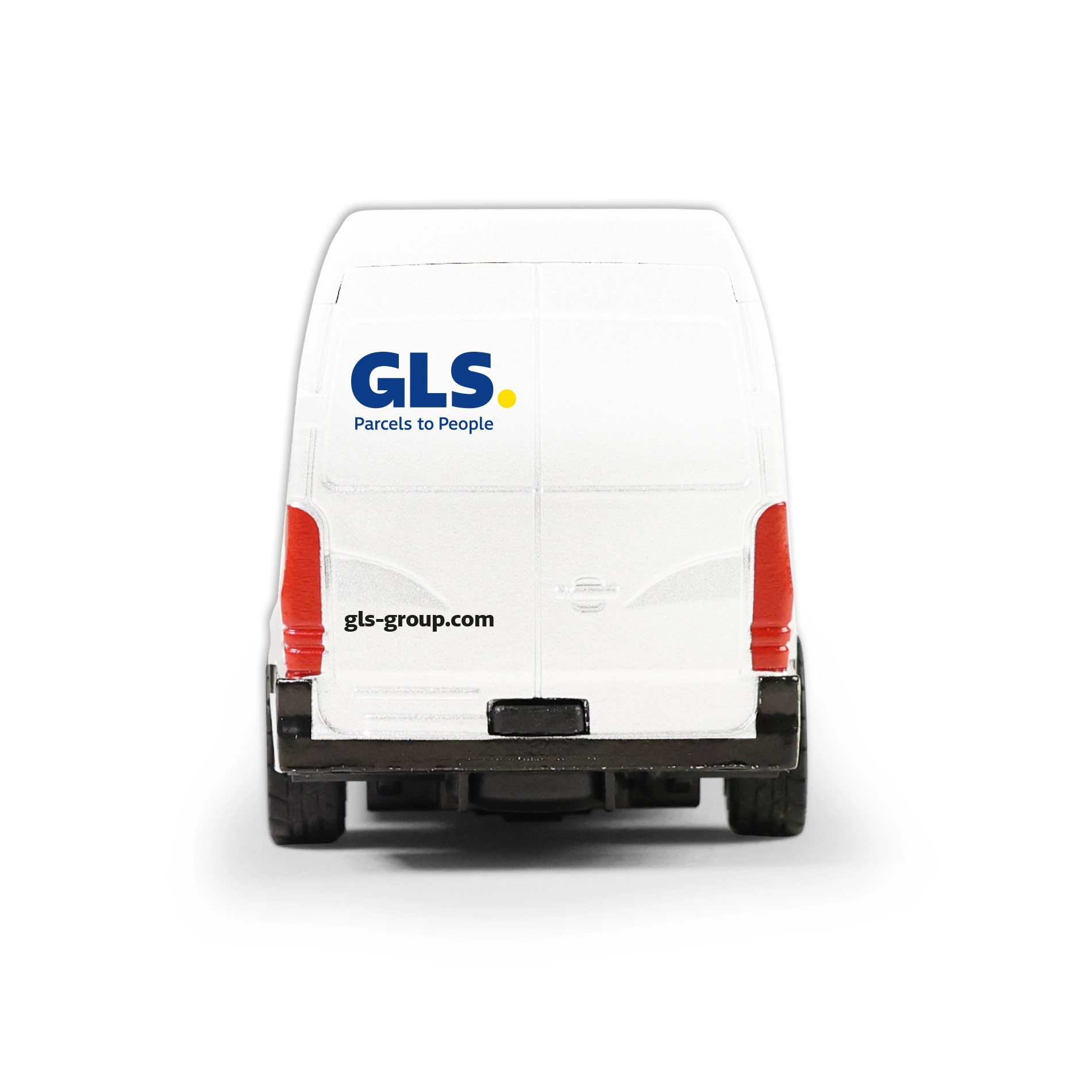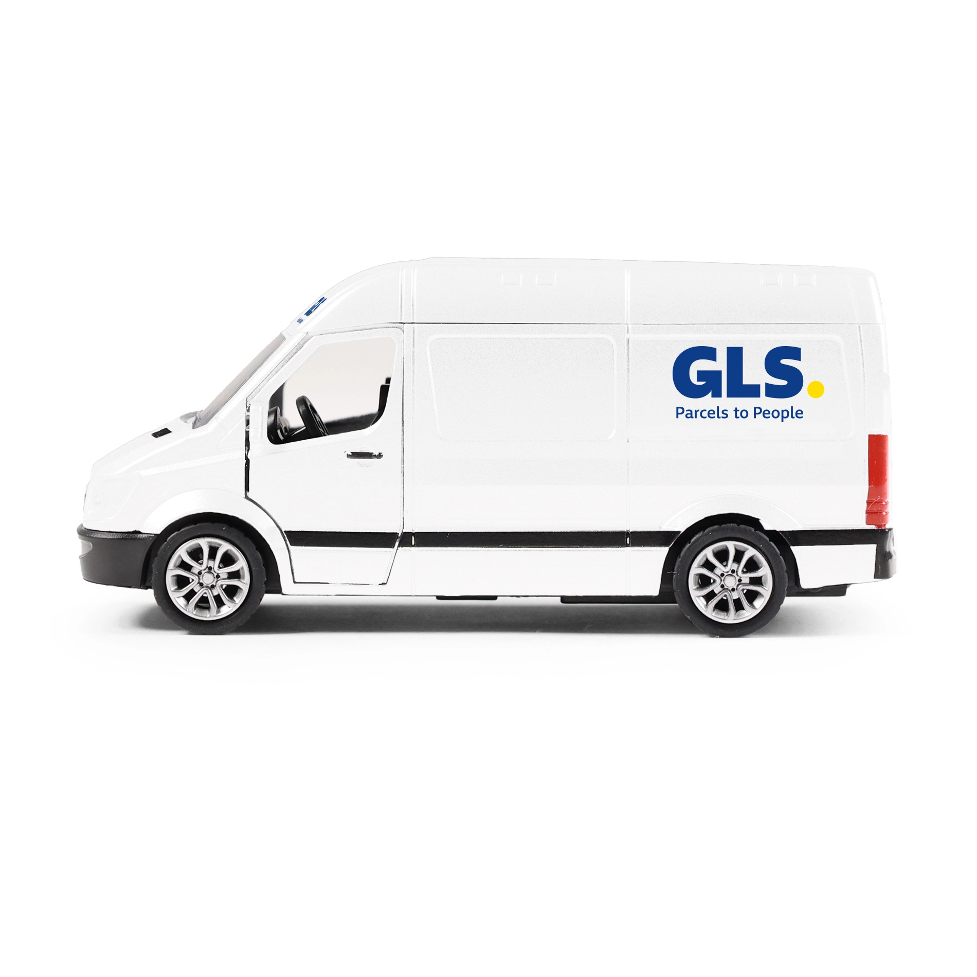Impresiones precisas del logotipo de GLS y el lema «Parcels to People», la forma de la carrocería, las ventanas y las llantas parecen las de un vehículo real.