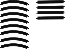 El juego con 8 tramos curvos y 4 rectos permite montar fácilmente un óvalo o ampliar una vía existente. Ancho entre carriles de 1,4 cm para una circulación estable.