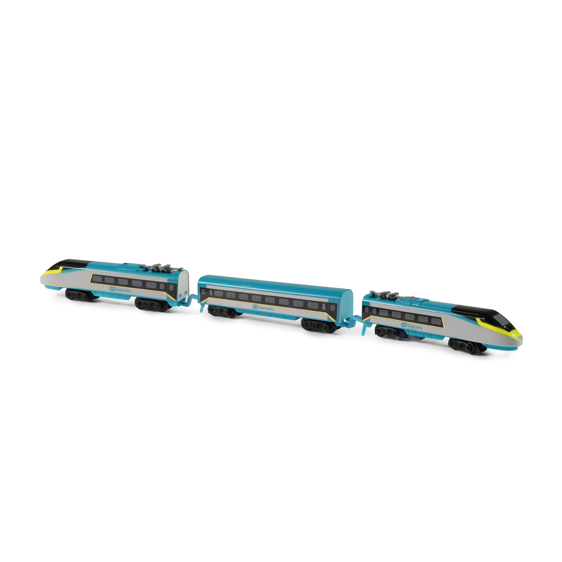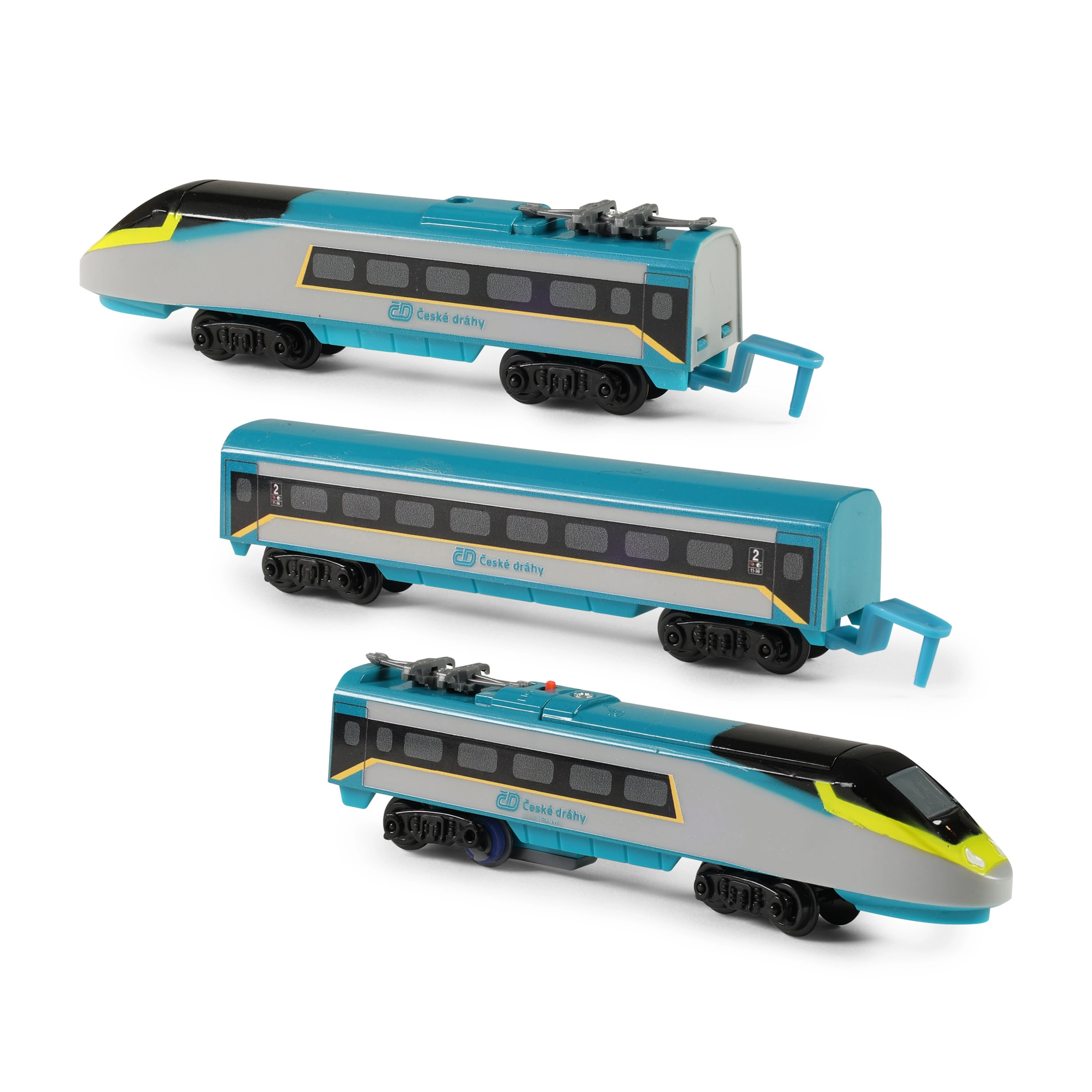 El Pendolino MINI incluye locomotora delantera y trasera y un vagón central de pasajeros con detalles cuidados para una experiencia de conducción auténtica.