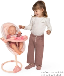 La trona y columpio multifuncional para muñecas 3 en 1 de la colección Tulipe destaca por sus suaves tonos pastel y su estampado floral, que encajan a la perfección en la habitación de cualquier niña. La estructura moderna permite cambiar rápidamente los modos de juego y fomenta la imaginación y el cuidado de la muñeca.