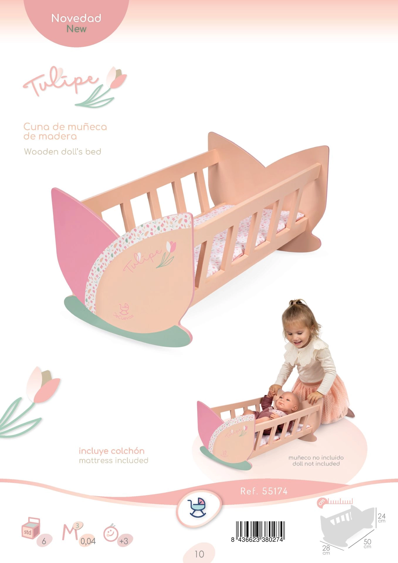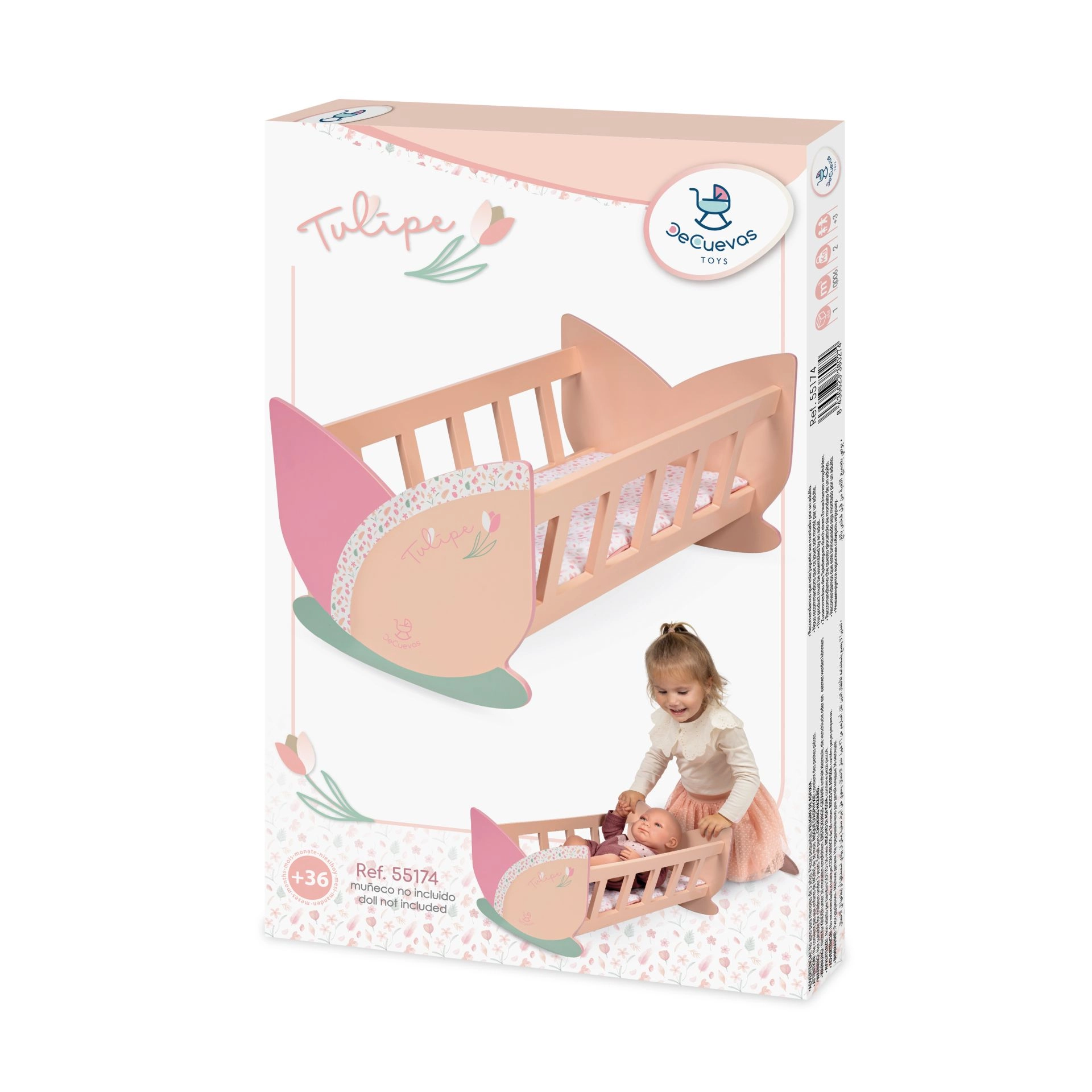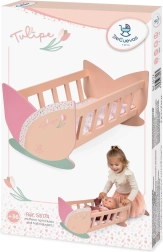 La cuna viene embalada en una caja con los colores de la colección y hará las delicias de cualquier pequeña mamá de muñecas que valore el bonito diseño español y la atención al detalle.