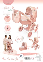 - Cochecito plegable para muñecas 3 en 1