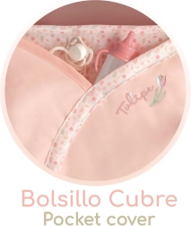 - Cubre-capazo con ojales de sujeción y práctico bolsillito