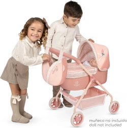 El encantador cochecito para muñecas de la colección Tulipe combina el precioso diseño español con la practicidad para el juego diario. Los suaves tonos pastel salmón con estampado floral y el bolso temático en forma de tulipán lo convierten en un regalo ideal para niños a partir de 3 años.