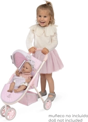 Descubre la delicada colección Sophie con detalles románticos en rosa, gris y blanco. Este cochecito deportivo triciclo para muñecas, gracias a su manillar bajo y a su peso de solo 1,5 kg, es una opción estupenda para los más pequeños. La elaboración precisa y el diseño español garantizan una larga vida útil y un uso cómodo.
