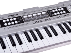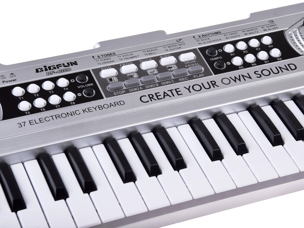 Descubre la alegría de la música con estas mini teclas ligeras y claras en acabado plateado. Con 37 teclas, un panel intuitivo y altavoces integrados, son ideales para los primeros pasos en el mundo de la melodía y el ritmo. Su completo conjunto de funciones potencia las habilidades de escucha, la coordinación y la creatividad.