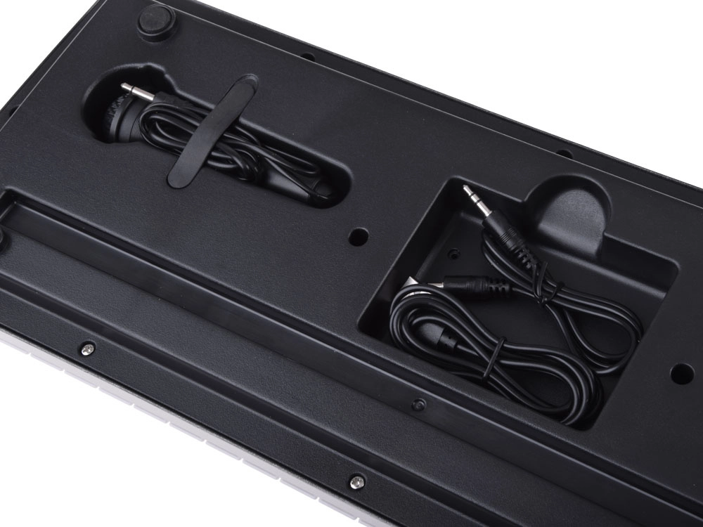 Elige entre 8 tonos y 8 ritmos de acompañamiento, inicia 6 demos para aprender o añade energía a tus arreglos con 4 efectos de percusión. A través de AUX IN puedes conectar el teléfono o reproductor y, con el micrófono incluido, disfrutar de karaoke en casa.