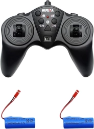 La batería recargable de 4 V integrada permite un uso repetido sin necesidad de cambiar pilas con frecuencia. En el paquete encontrarás también un adaptador de carga; para el mando basta con insertar 2× AA 1,5 V. Regalo ideal para niños que aman las máquinas y el juego creativo en la obra.