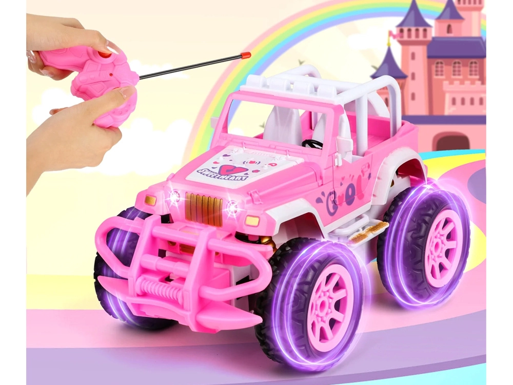 El elegante coche RC todoterreno rosa para niños combina un diseño atractivo con una conducción dinámica. Gracias al mando a distancia sencillo, los niños aprenden rápidamente a conducir hacia delante, hacia atrás y a girar, mientras desarrollan la motricidad fina y el pensamiento lógico. Los efectos de luz aportan realismo a la conducción y aún más diversión.