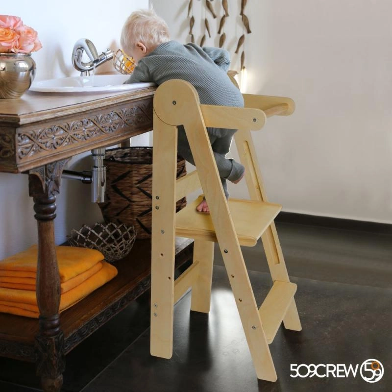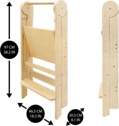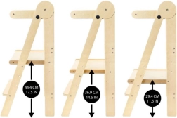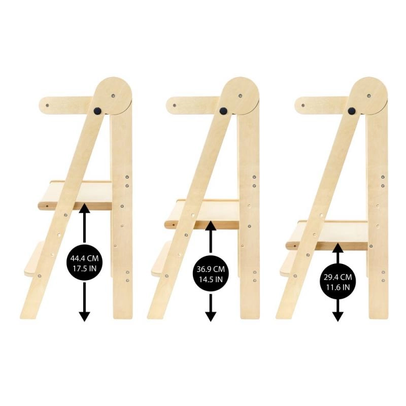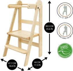 El diseño bien pensado permite a los niños subir de forma segura e independiente gracias al peldaño a 16 cm de altura. La torre es plegable, se traslada fácilmente de la cocina al baño y ocupa un espacio mínimo al guardarla. La madera probada no contiene formaldehído, por lo que tendrá la seguridad de un material inocuo para la salud.