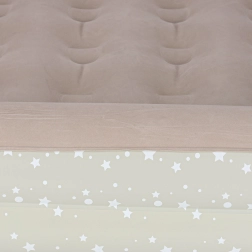 Práctica cama inflable infantil de dos piezas que ofrece un descanso seguro gracias a sus bordes elevados y a un colchón interior independiente. El paquete incluye una bomba manual con distintos accesorios para un inflado rápido, un parche de reparación y un manual. La superficie aterciopelada, el estampado de estrellas y sus dimensiones compactas hacen de esta cama una opción ideal para viajes, para casa de los abuelos y para invitados inesperados. Capacidad de carga hasta 50 kg, tamaño para 1 niño.