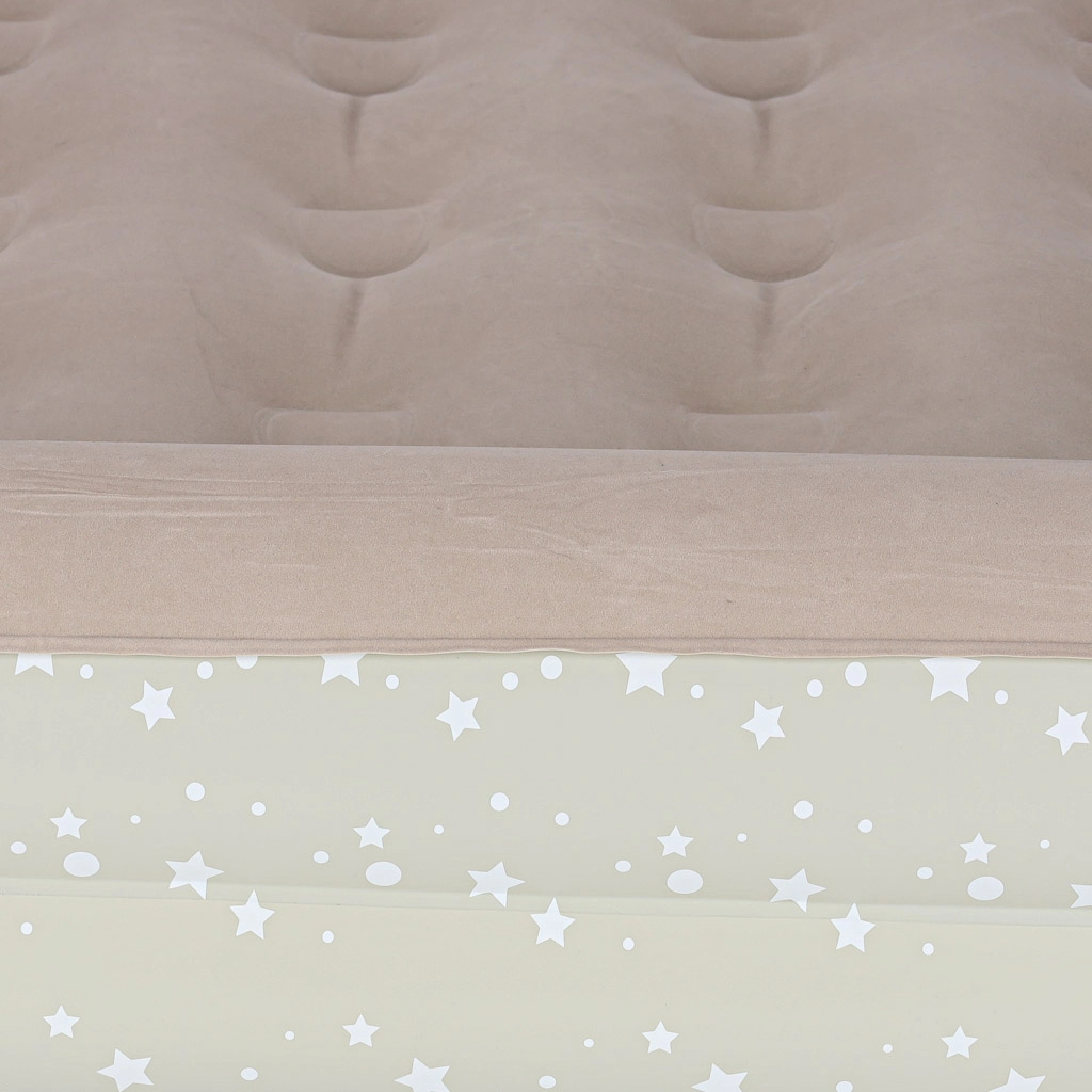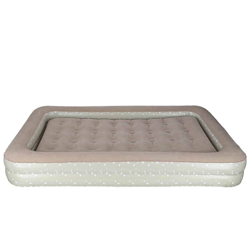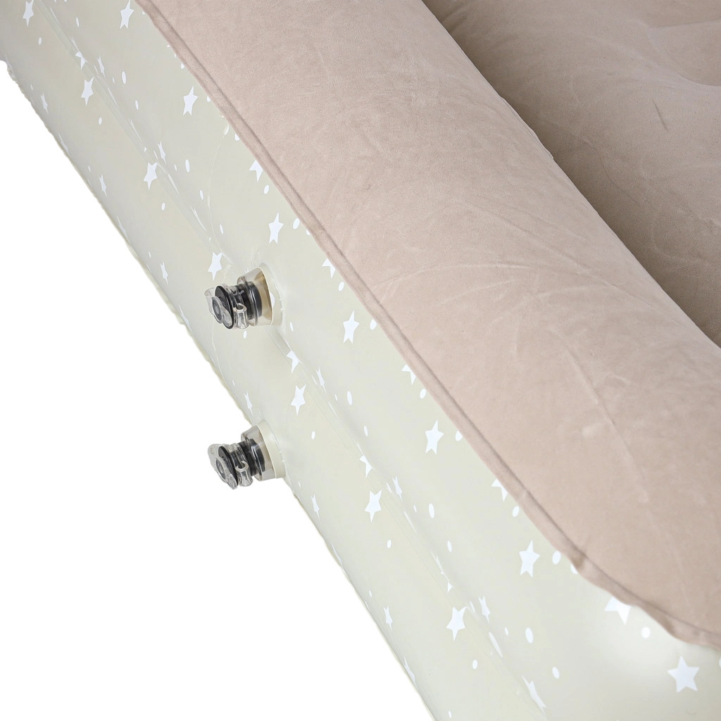Cree un espacio cómodo y seguro para los niños en cualquier lugar: esta cama inflable infantil de dos piezas combina un marco exterior con bordes elevados y un colchón interior extraíble. La superficie flocada (tipo terciopelo) es agradable al tacto y evita que la ropa de cama se deslice. El elegante estampado de estrellas aporta un toque divertido.