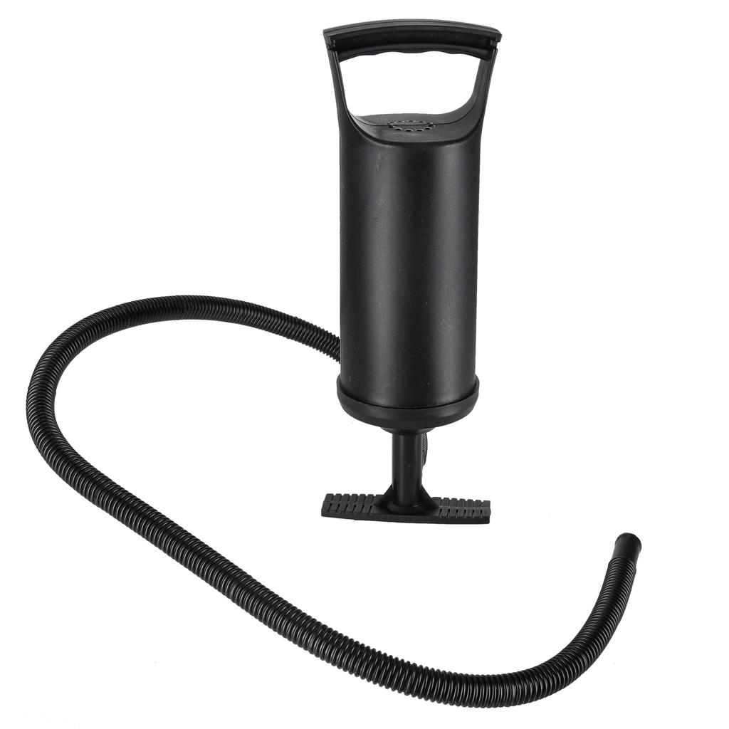 El paquete incluye una bomba manual compacta con 3 tipos de válvulas y tubo flexible, para inflar y desinflar fácilmente en casa, en la casa de campo o en el camping.