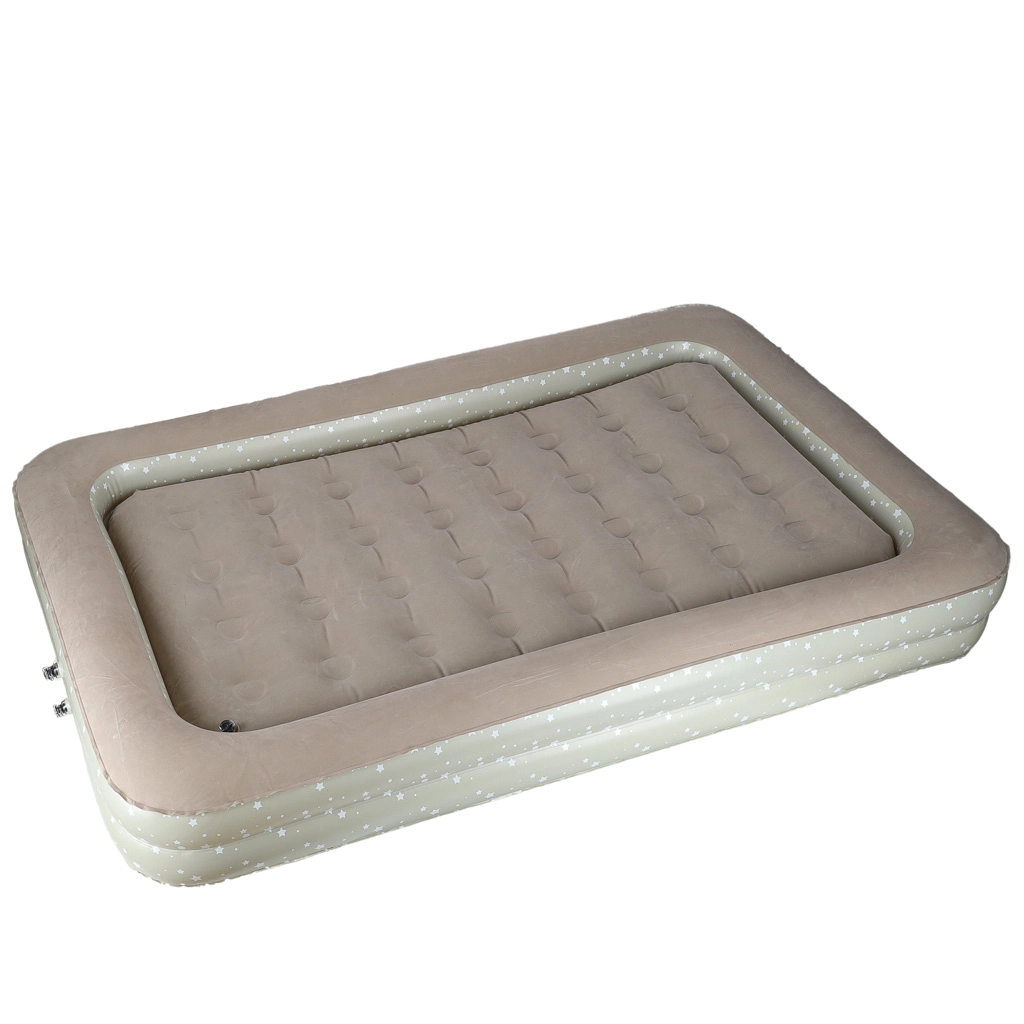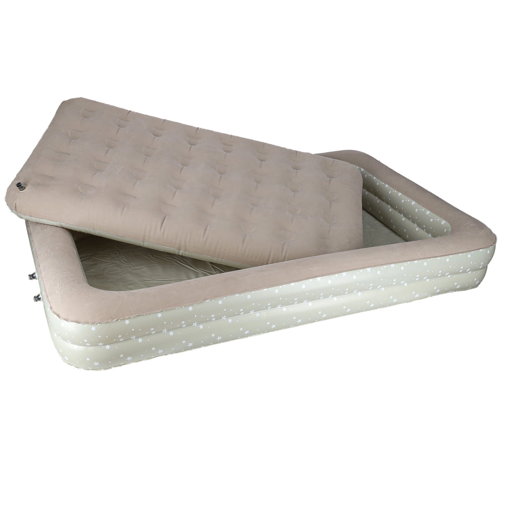 El marco inflable exterior con laterales elevados mantiene al niño en el centro de la cama y evita que se deslice durante el sueño. Ideal para una noche tranquila en casa o de viaje.