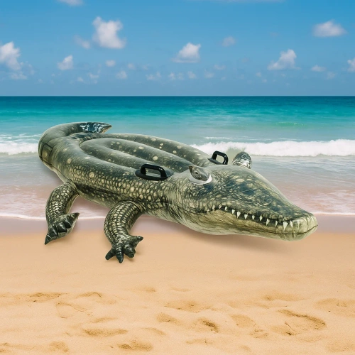 El divertido caimán inflable INTEX es ideal para la piscina, el lago y las vacaciones. Ofrece 2 cámaras de aire para mayor estabilidad, 2 asas resistentes para un agarre seguro y material duradero con parche incluido. Gracias a su superficie plana y estable, los niños pueden sentarse y tumbarse con seguridad. Ligero, compacto y con aspecto realista, con dimensiones de 170 × 86 cm.