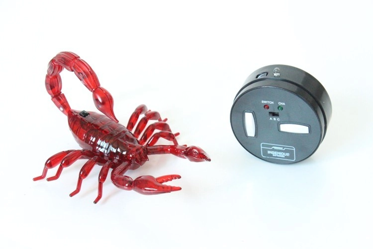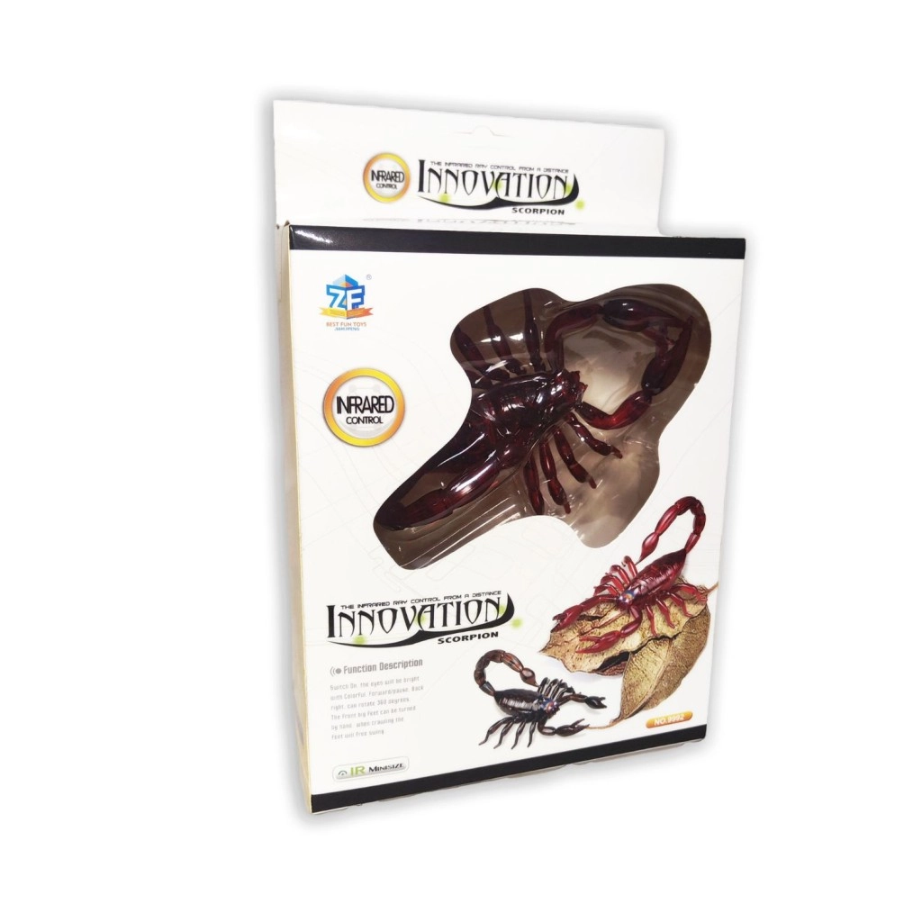 Este escorpión radiocontrolado encantará a pequeños y grandes fans de los juguetes robóticos. Gracias al control por infrarrojos se mueve hacia adelante, atrás, a la izquierda y a la derecha, mientras que los ojos LED añaden un efecto atractivo al juego. El manejo es sencillo y divertido, con un alcance de hasta 8 metros.