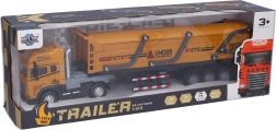 El robusto camión tractor metálico con semirremolque volquete alegrará a los pequeños conductores por su diseño realista y sus funciones. Ofrece mecanismo de inercia para una conducción fluida, efectos de luz y sonido con activación por movimiento de las ruedas delanteras, y una práctica palanca para bloquear el semirremolque. El remolque se puede desconectar fácilmente. Las pilas 3× AG13 están incluidas en el paquete.