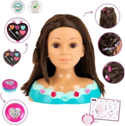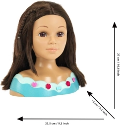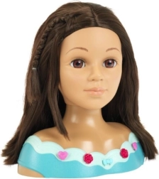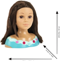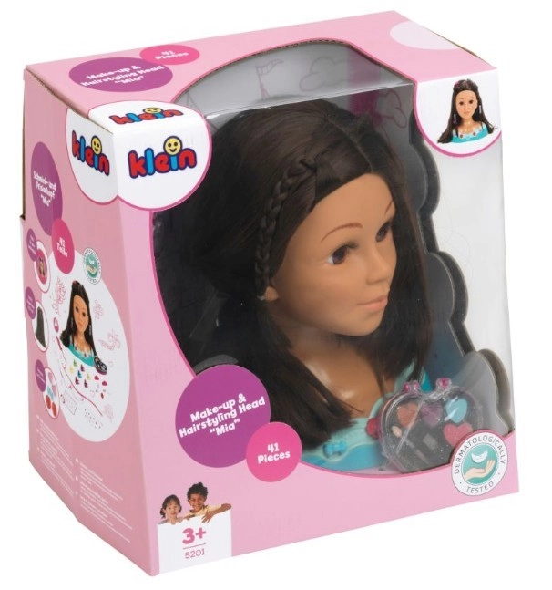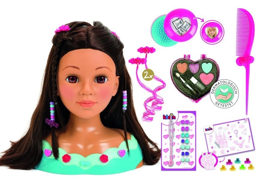 La cabeza para peinar y maquillar Mia ofrece todo lo que pequeños peluqueros y maquilladores necesitan. El cabello largo y lavable se puede peinar, cepillar y trenzar y decorar con horquillas o cuentas. La cosmética infantil incluida está dermatológicamente probada, por lo que es segura para el juego y la delicada piel de los niños.