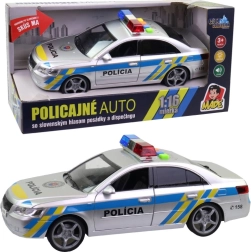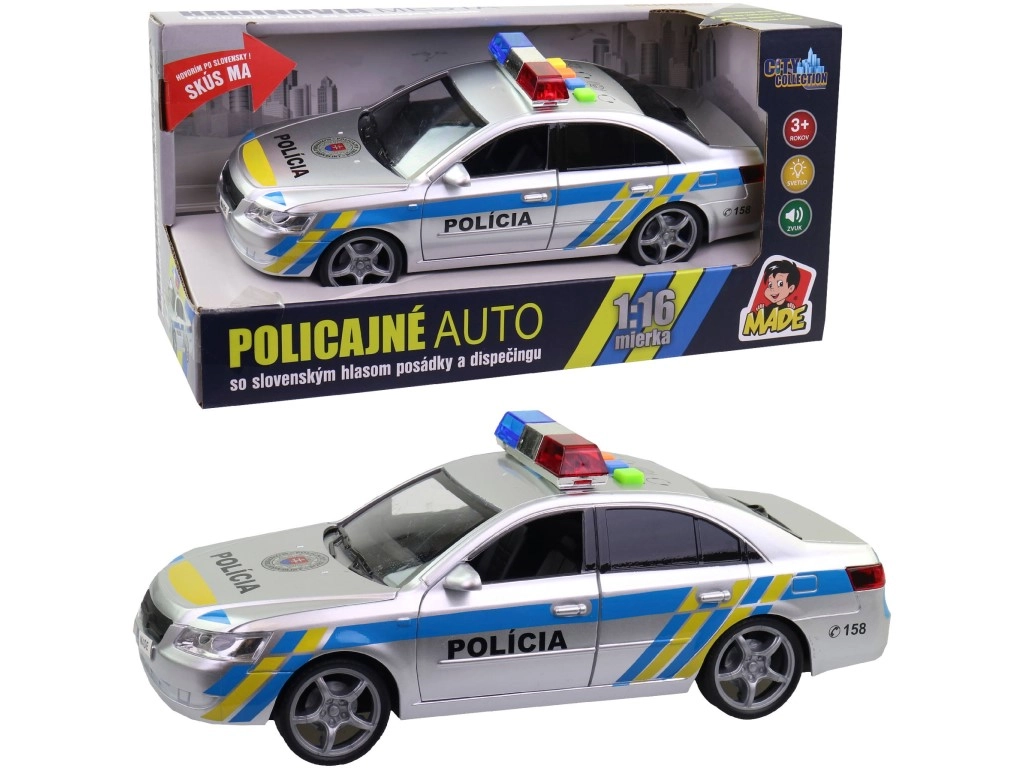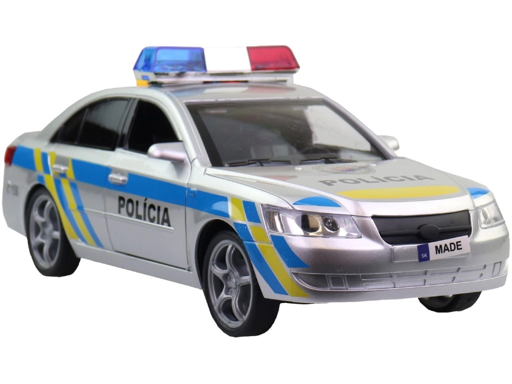 Realista coche de policía con diseño eslovaco, con frases de voz en eslovaco de la tripulación y del despacho, y una baliza luminosa funcional. Ofrece efectos de sonido, avisos de intervención auténticos y un tamaño compacto ideal para jugar en casa o al aire libre.