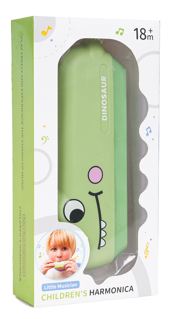 Adorable armónica infantil con forma de dinosaurio para pequeños músicos a partir de 18 meses. Es ligera y resistente, produce un sonido limpio y claro y, gracias a sus dimensiones compactas, el niño puede llevarla fácilmente a cualquier parte. Favorece el desarrollo del oído y las habilidades musicales y, con su diseño juguetón de dinosaurio, encantará a cada niño.