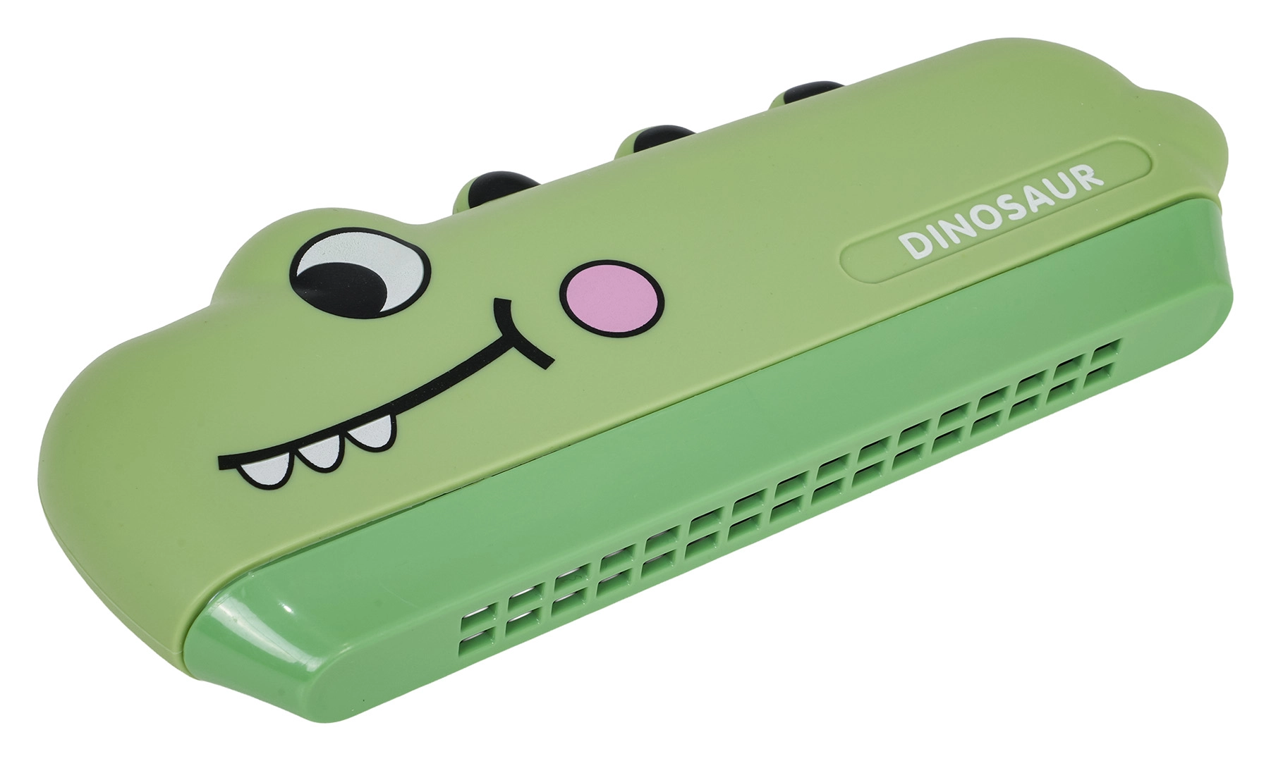 La armónica infantil con forma de dinosaurio es el primer instrumento musical ideal para los más pequeños. Gracias a su cuerpo de plástico seguro y bajo peso, se sostiene cómodamente en las pequeñas manos y, al soplar, produce tonos limpios y agradables. Su alegre diseño con dinosaurio fomenta el juego y motiva de forma natural a los niños a descubrir el mundo de la música.