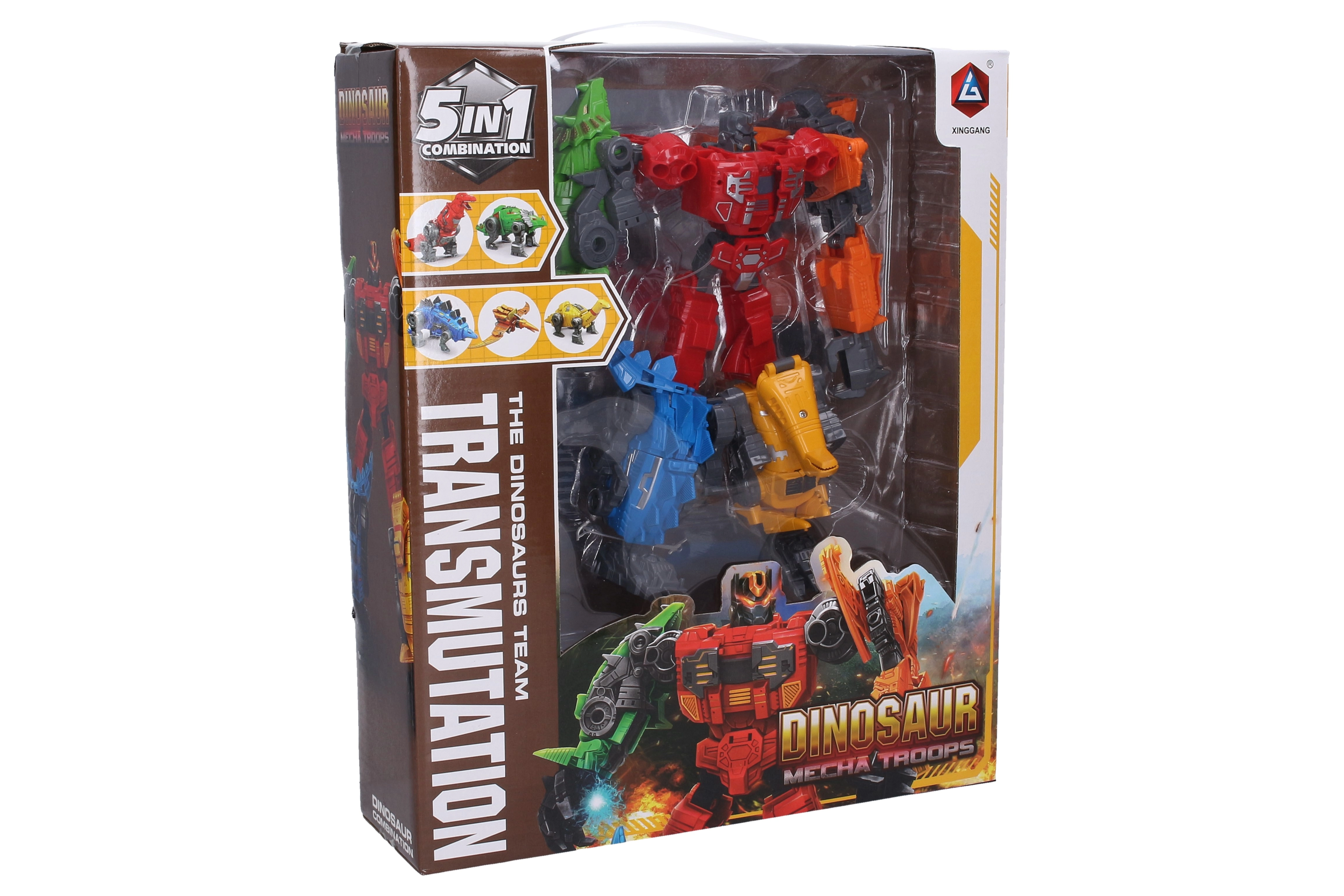 - Sistema 5 en 1 – cinco robots más pequeños se unen para formar un gran dinorobot