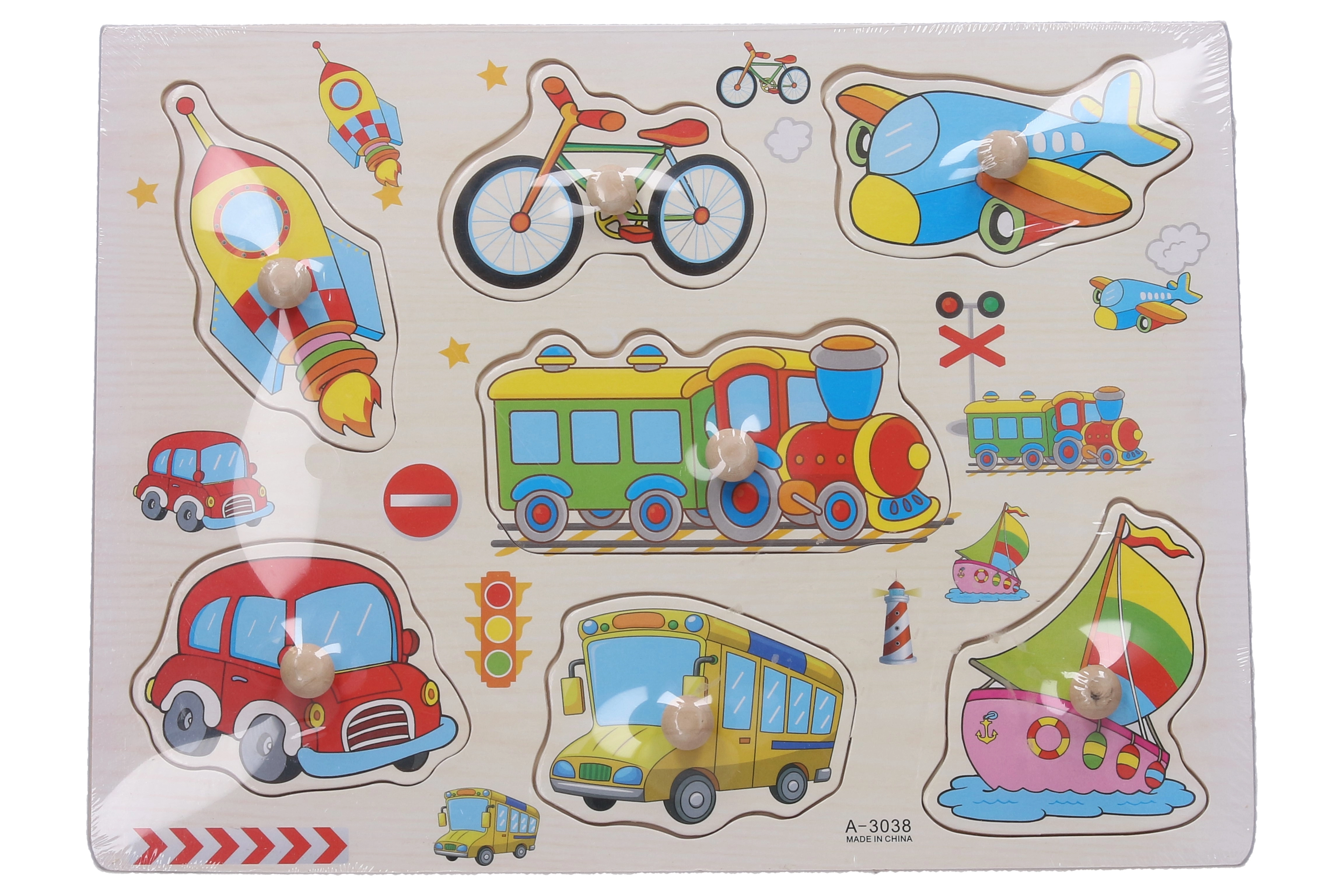 Descubra un juego divertido y educativo para los más pequeños: rompecabezas de encaje de madera con temática de medios de transporte de 30 cm de longitud. Desarrolla la motricidad fina, el reconocimiento de formas y el pensamiento lógico, aportando a la vez la alegría de aprender jugando.
