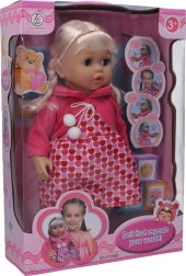 Esta muñeca interactiva ofrece a los niños muchas risas y aprendizaje. Al presionar la mano derecha se oye un sonido y la muñeca empieza a grabar: basta con hablarle a la boca. Presionando de nuevo la mano derecha finalizarás la grabación. Al presionar la mano izquierda, la muñeca reproduce la grabación. El manejo es tan sencillo que incluso los más pequeños pueden hacerlo.