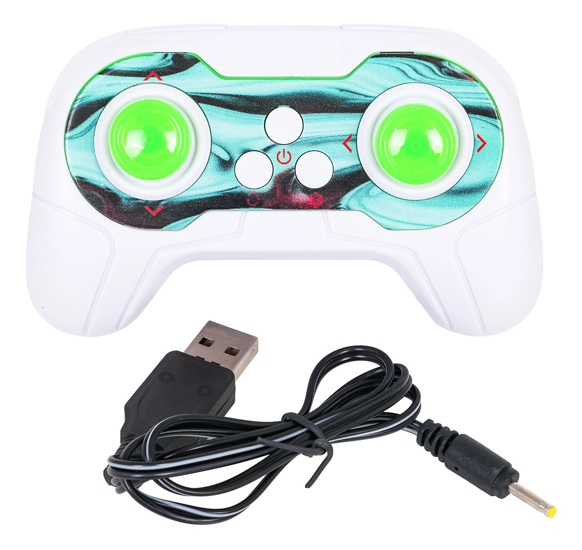 El modelo está fabricado con materiales de alta calidad y resistencia para soportar golpes durante las acrobacias. El control se realiza con un mando a distancia claro e intuitivo; el paquete incluye también un cable de carga. Elección ideal para pequeños pilotos principiantes y avanzados.