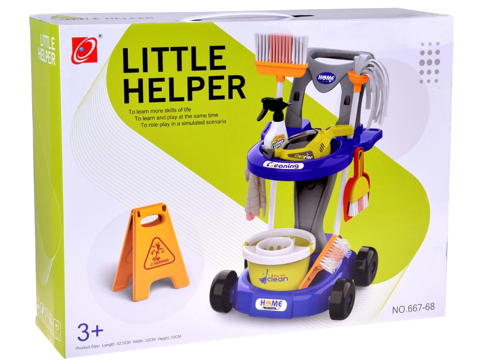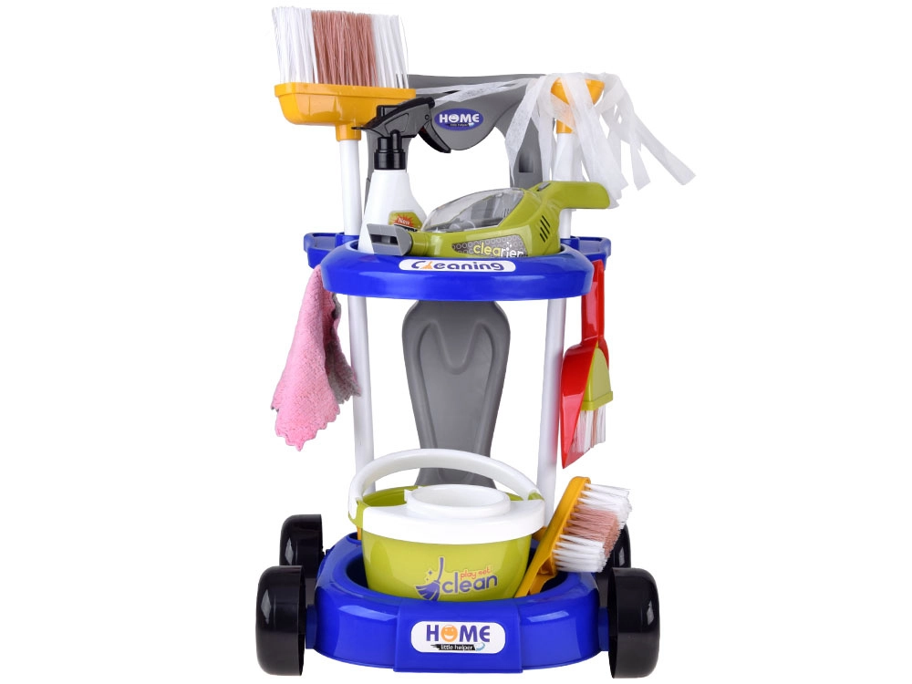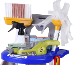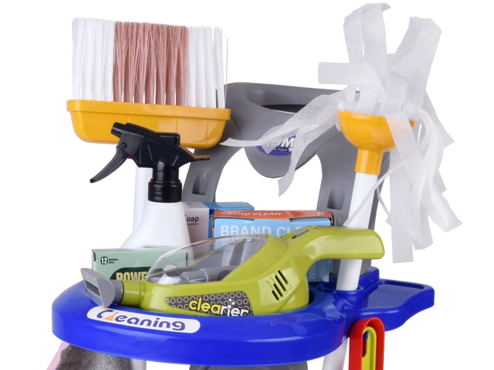 Brinda a los niños diversión realista con un carrito de limpieza lleno de accesorios. El set incluye mopa, escoba, cepillo de mano con raspador, cubo con escurridor, paño, pulverizador, señal de advertencia, cajitas de cartón y una aspiradora de juguete con boquillas intercambiables y bolitas para “aspirar”. Así, los niños imitan de forma segura las actividades cotidianas de los adultos y aprenden lo importante que es mantener el orden.