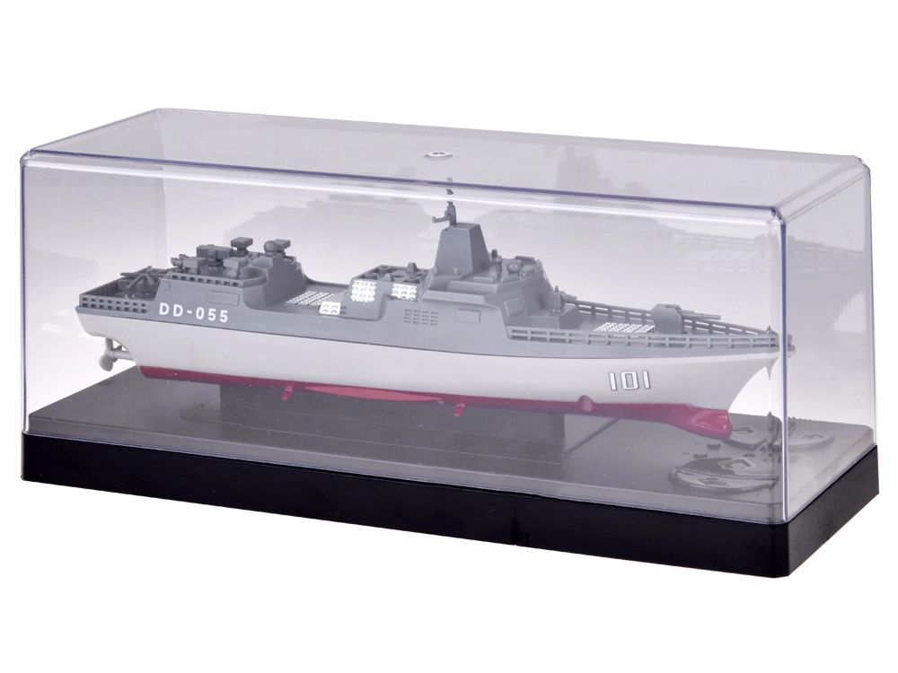 Descubre la fuerza de los océanos con el destructor torpedero RC DD-055. El barco en combinación de colores gris y rojo imita fielmente a un moderno destructor de misiles y destaca por sus ricos detalles: desde elementos de la cubierta hasta la pista de aterrizaje para helicóptero. Gracias a su tamaño compacto, se controla de maravilla y también luce en la estantería dentro de la mini vitrina incluida en el paquete.