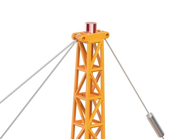 Manipulación realista de la carga gracias a la torre giratoria, la polea y el gancho: los niños pueden levantar y trasladar pequeños objetos como en una obra real.