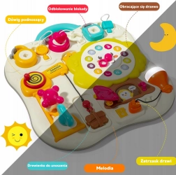 Descubre el divertido mundo del aprendizaje con el tablero manipulativo interactivo Woopie, que motiva a los niños a explorar causas y efectos y a entrenar habilidades prácticas. Sus variados elementos, como cerraduras con llaves, interruptores, ruletas y un reloj funcional con manecillas, desarrollan la coordinación ojo–mano y fomentan la autonomía y la creatividad.