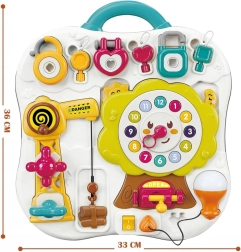 El tablero manipulativo interactivo Woopie es un excelente juguete educativo para niños a partir de 1 año que desarrolla habilidades de forma lúdica. Gracias a sus elementos de colores, perillas giratorias, interruptores y un reloj didáctico con esfera, fomenta el pensamiento lógico, la motricidad fina y la concentración. Es ligero, cuenta con un asa práctica para transportarlo fácilmente y ofrece largas horas de diversión con propósito.
