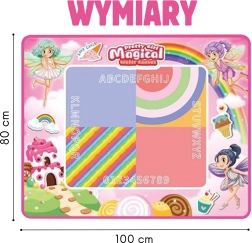 La alfombrilla de dibujo con agua WOOPIE ofrece a los niños pintura limpia y segura solo con agua – sin desorden, sin manchas ni tinta. Los dibujos desaparecen por sí solos tras unos minutos, por lo que los niños pueden crear una y otra vez. El gran formato, los abundantes accesorios y el mágico motivo de hadas en colores pastel fomentan la imaginación, la motricidad fina y largas horas de juego creativo tanto en casa como en el jardín.