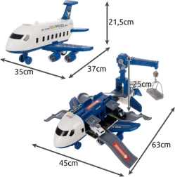 El avión de policía plegable introduce a los niños en el mundo de acción de los servicios de rescate en un solo juguete. Al abrirlo, se convierte en un aparcamiento detallado con rampas transitables, garajes y funciones divertidas. Gracias a los efectos de luz y sonido y a la tracción en las ruedas traseras, los niños disfrutarán de un juego realista lleno de persecuciones y misiones de rescate.